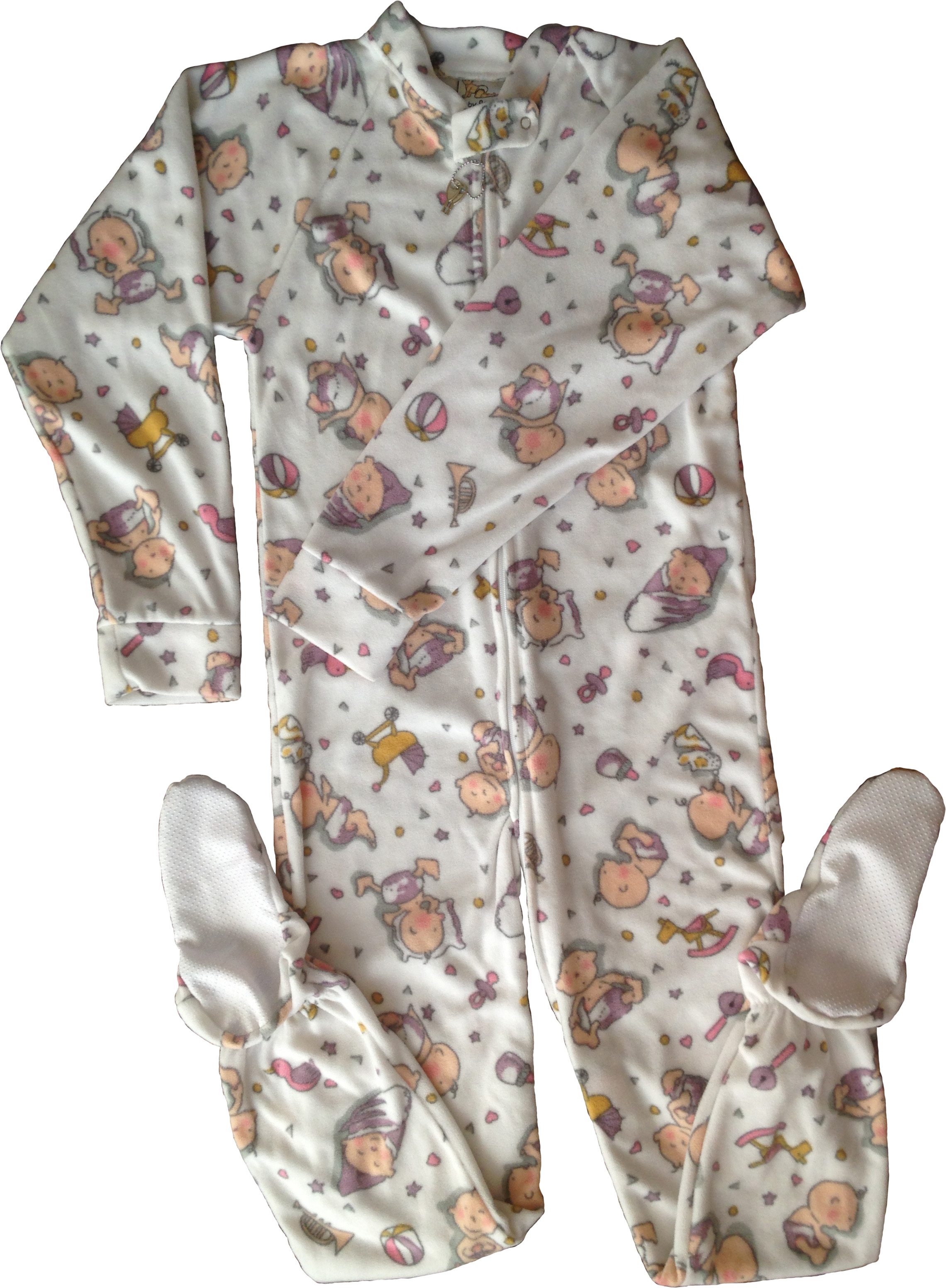 Two piece summer footy jammies just for your big baby. These jammies will be available in three styles. Toddler style snaps up the back and has adjustment snaps at the waist, long sleeves and feet on the pants. For older babies we will have the same jammie but short sleeves and no feet on the bottoms. The third style will be Sleep and Play, a one piece with long sleeves, feet and a locking zipper up the front.