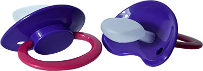 These baby pacifiers are manufactured for larger mouths of big babies. The guard width (longest dimension) is 2 inches for the colored pacifiers and 2 3/16 inch for the white pacifiers. Shipped with the NUK box,this is the largest pacifier made by NUK and has been nick named the NUK 5 as a result. This pacifier can be comfortably sucked by an adult with tremendous benefit. Keep one in the diaper bag, one in your purse and several in the nursery.